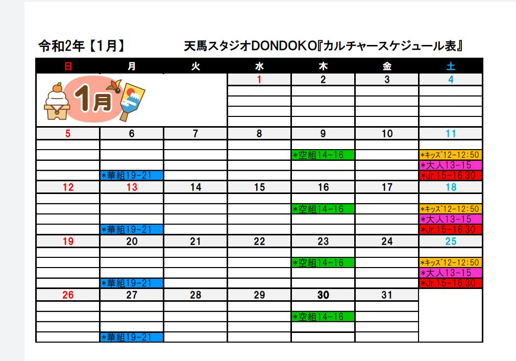 2020年1月のレッスン一覧表です!