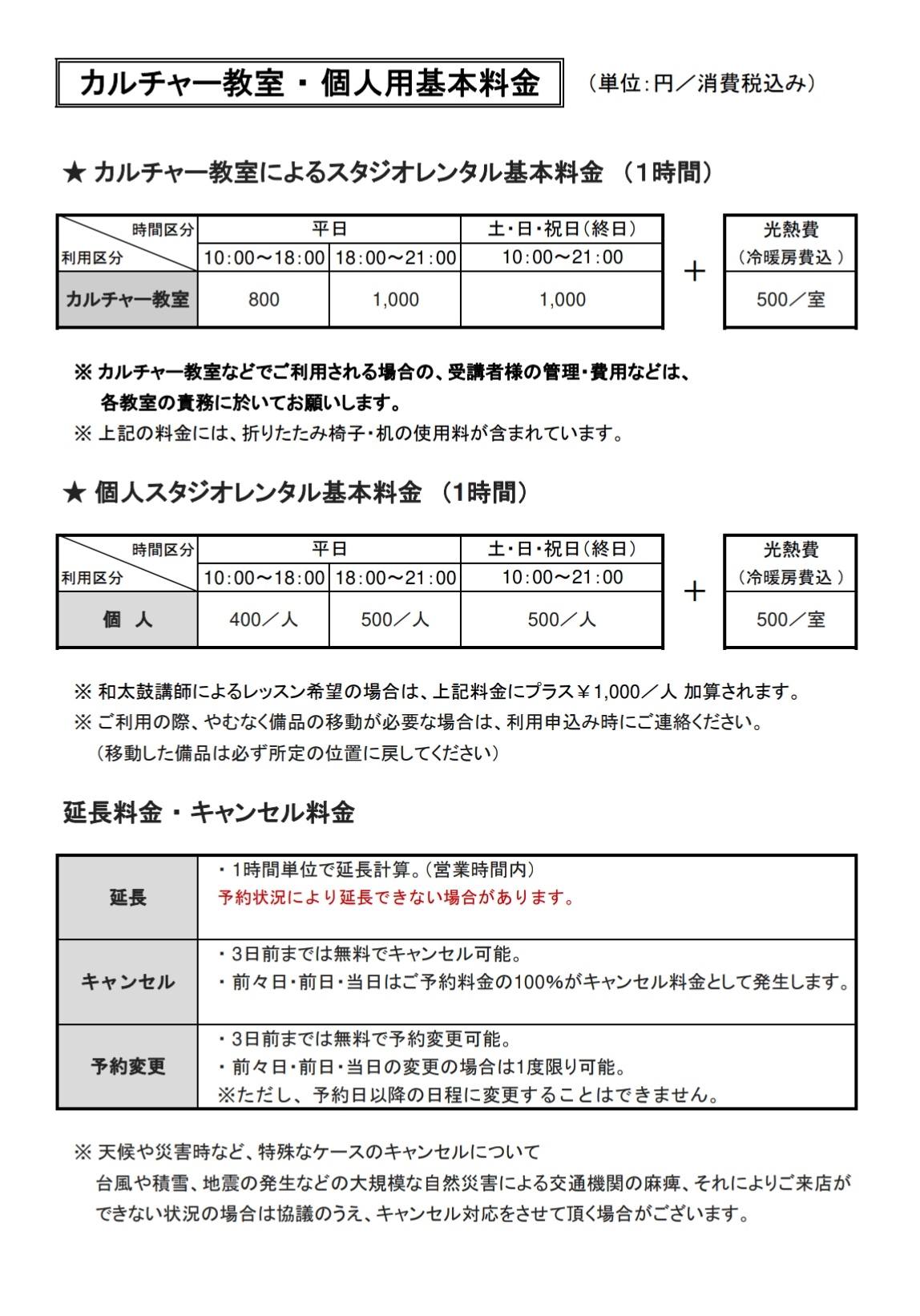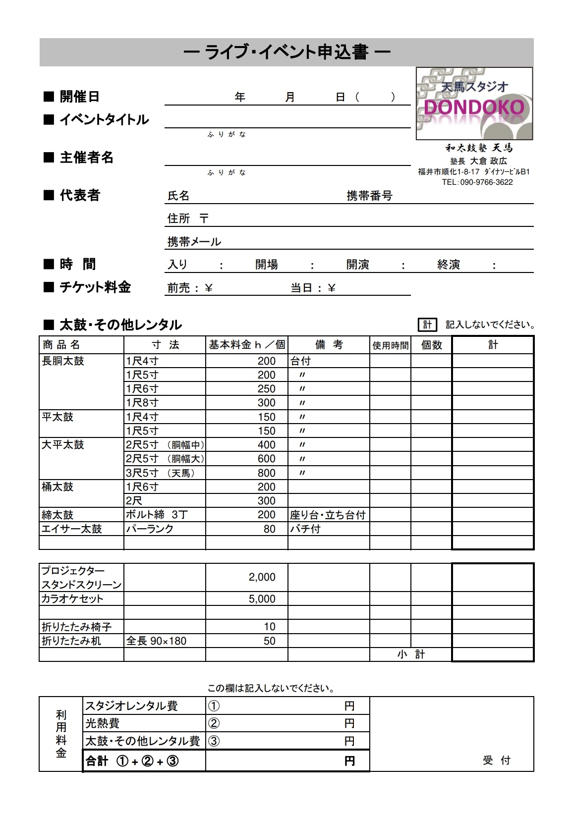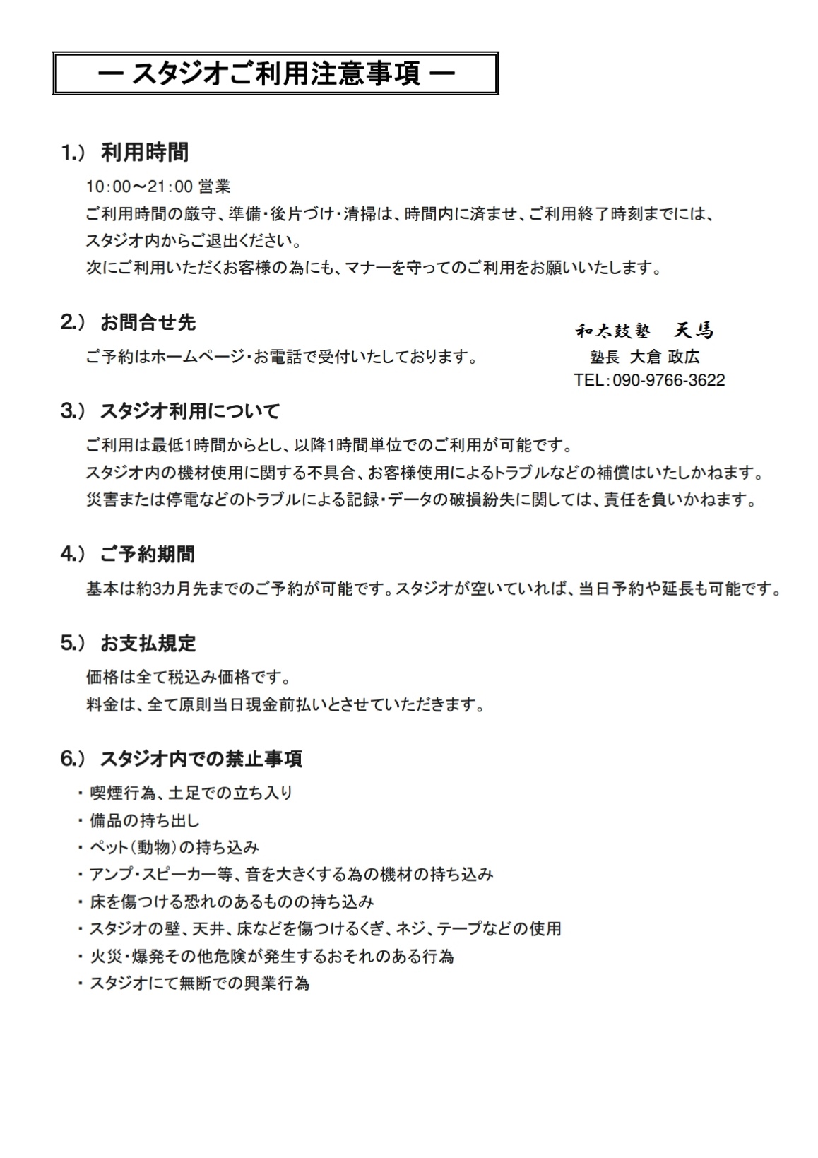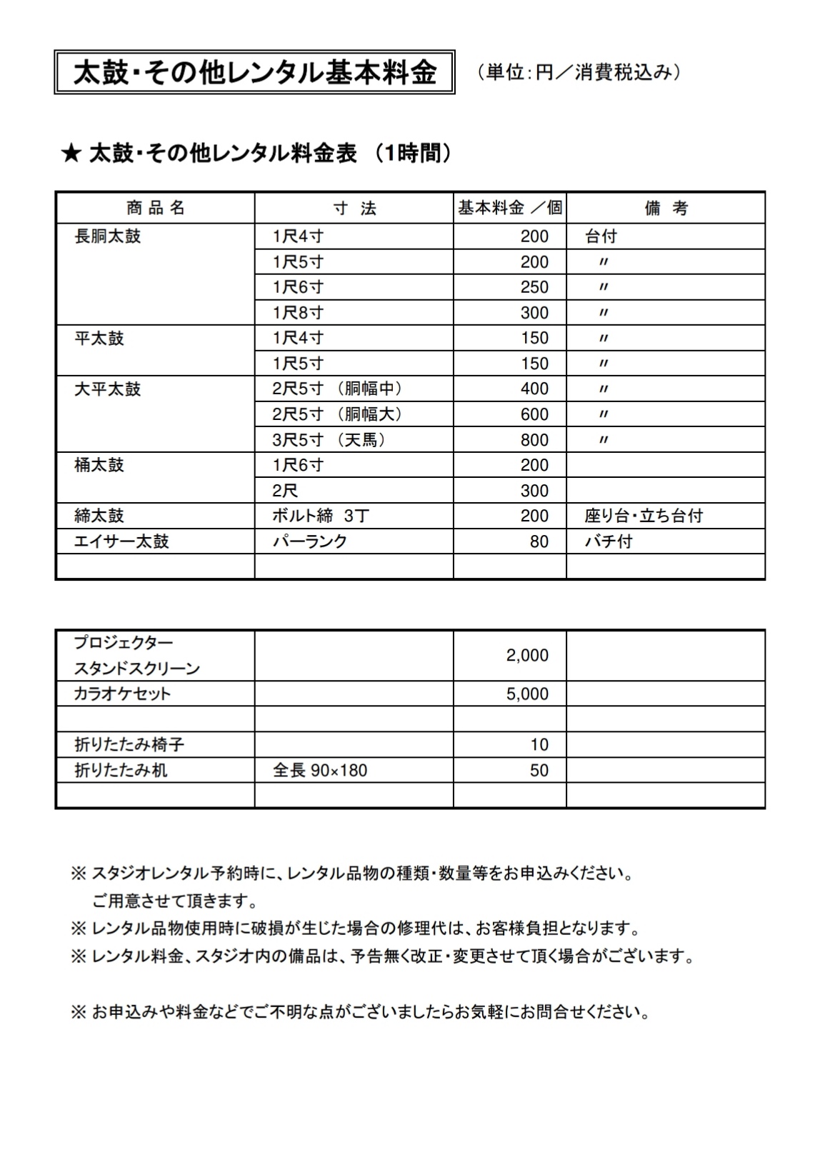 教材費:バチ一組 初回のみ(¥1,500~¥2,000)
